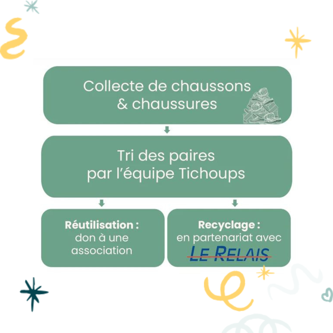 Dans un objectif « 0 gâchis » nous vous invitons à déposer ou nous envoyer les chaussons et chaussures (toutes marques confondues) que vous n'utilisez plus à l'adresse suivante :
