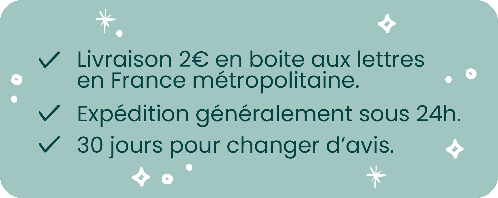 Si un article ne vous convient pas, vous pouvez le retourner sous 30 jours pour un échange ou un remboursement.