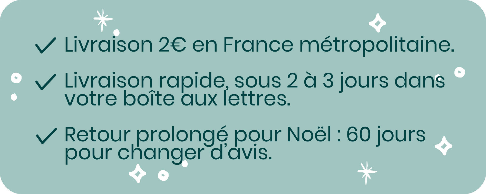 Si un article ne vous convient pas, vous pouvez le retourner sous 30 jours pour un échange ou un remboursement.